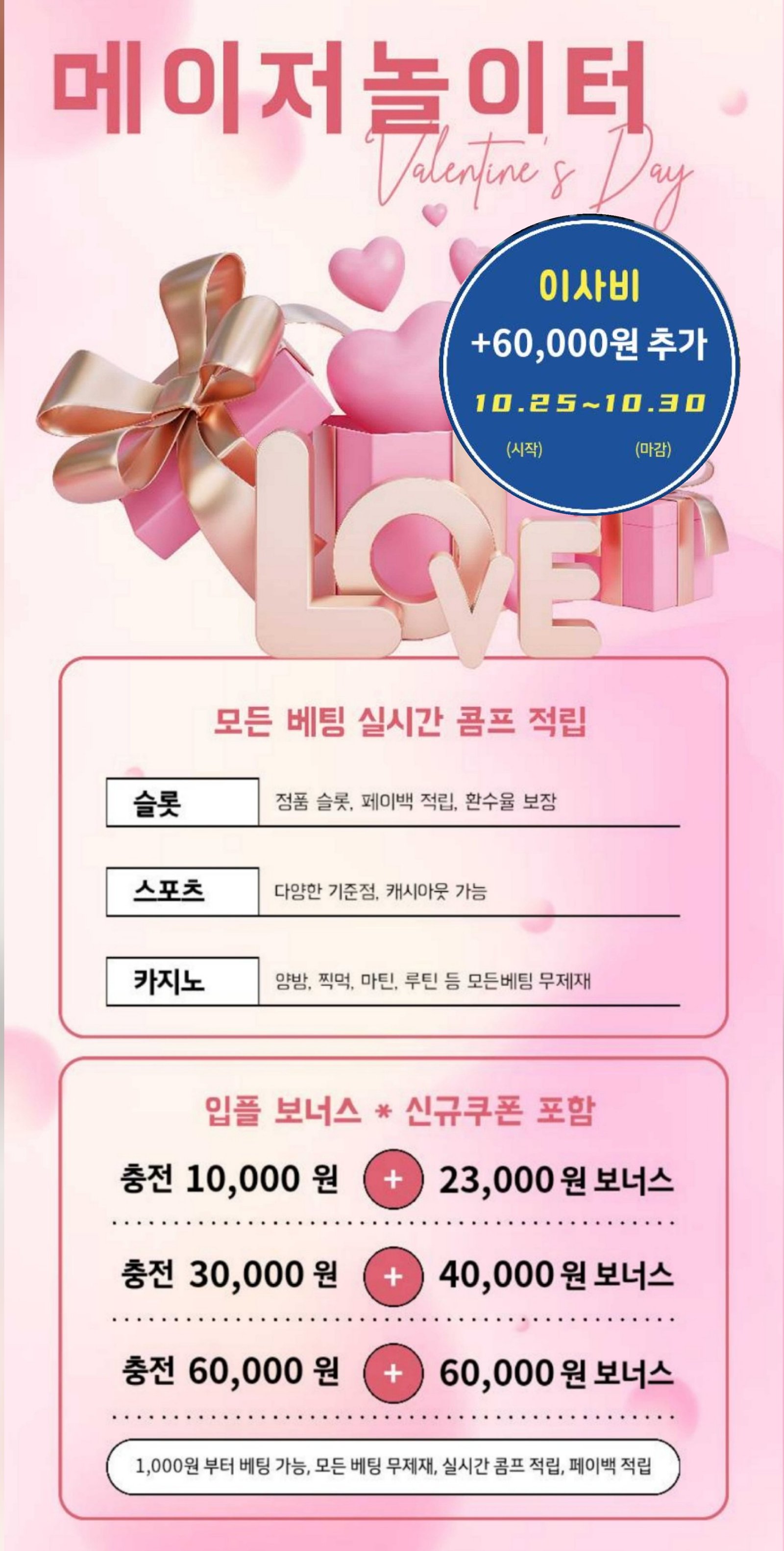 가입첫충30% 페이백30% /입금플러스 3+2 5+3 10+5 20+7 30+10/콤프지원 1.2 / 1.5