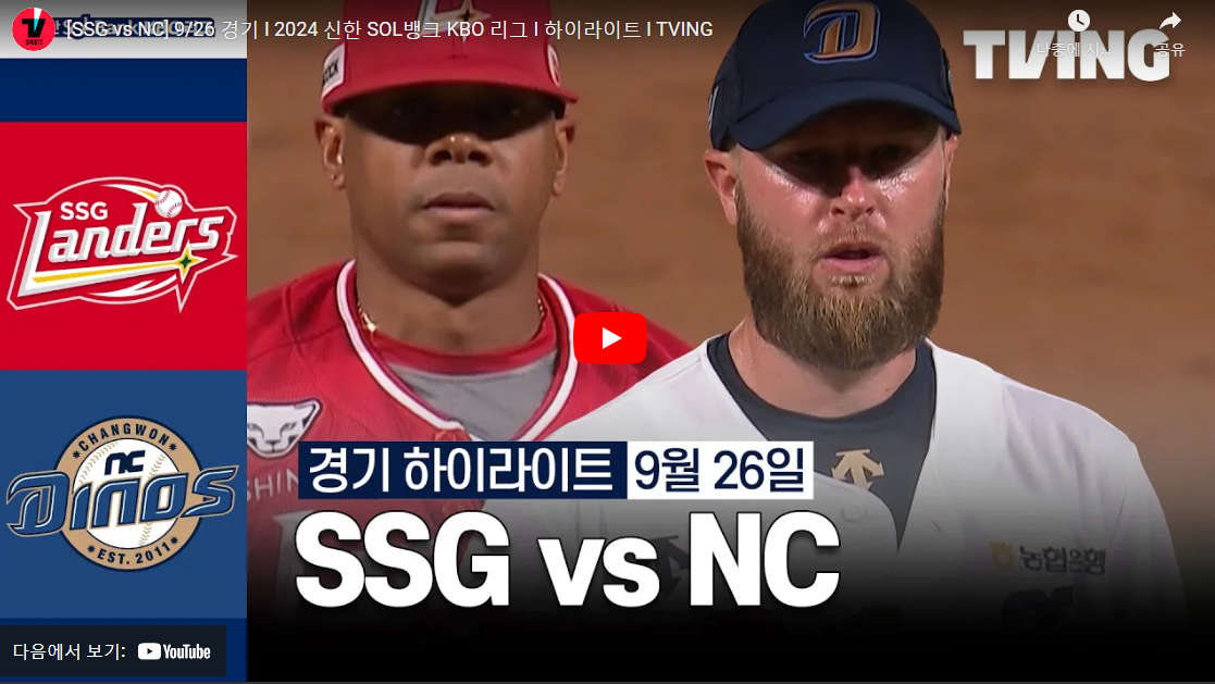 [SSG vs NC] 9/26 경기 I 2024 신한 SOL뱅크 KBO 리그 I 하이라이트