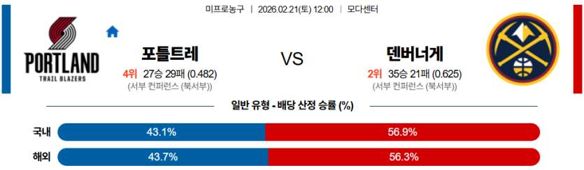 2026-02-21 12:00 NBA 포틀랜드 트레일블레이저 덴버 너겟츠