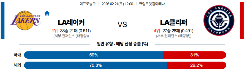 2026-02-21 12:00 NBA LA 레이커스 LA 클리퍼스