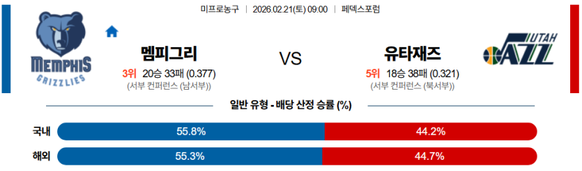 2026-02-21 09:00 NBA 멤피스 그리즐리즈 유타 재즈