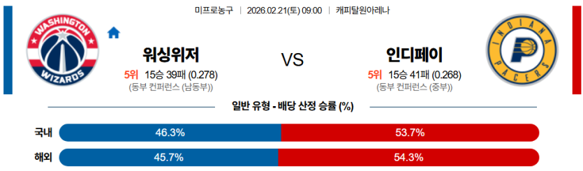 2026-02-21 09:00 NBA 워싱턴 위자드 인디애나 페이서스