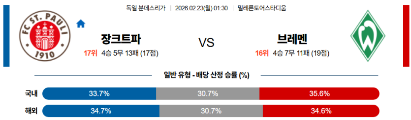 2602-02-23 01:30 분데스리가 FC 장크트파울리 SV 베르더 브레멘