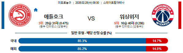 2026-02-25 09:30 NBA 애틀랜타 호크스 vs 워싱턴 위자드
