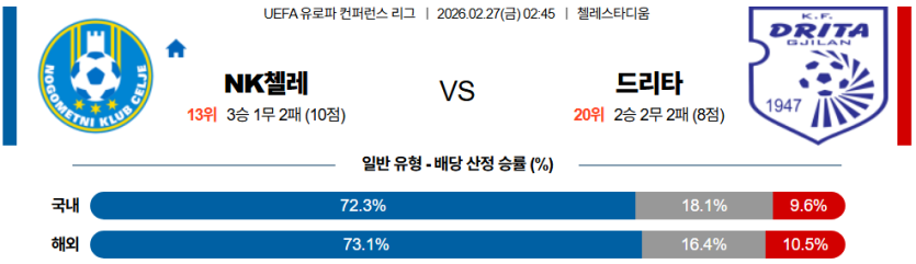 2026-02-27 02:45 UEFA 컨퍼런스리그 NK 첼레 드리타