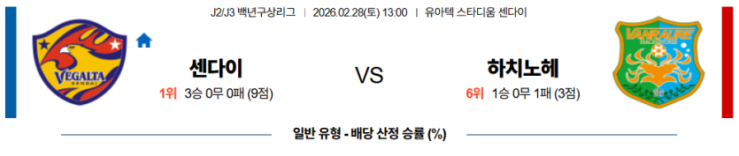 2026-02-28 13:00 J리그 백년구상리그 베갈타 센다이 하치노헤