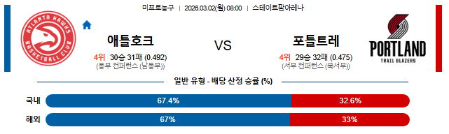 2026-03-02 NBA 애틀랜타 호크스 vs 포틀랜드 트레일블레이저