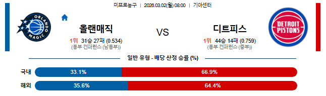 2026-03-02 NBA 올랜도 매직 vs 디트로이트 피스톤스