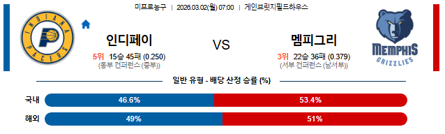 2026-03-02 NBA 인디애나 페이서스 vs 멤피스 그리즐리즈