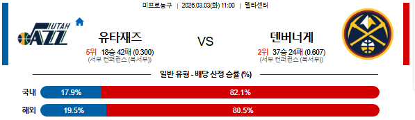 2026-03-03 11:00 NBA 유타 재즈 vs 덴버 너겟츠
