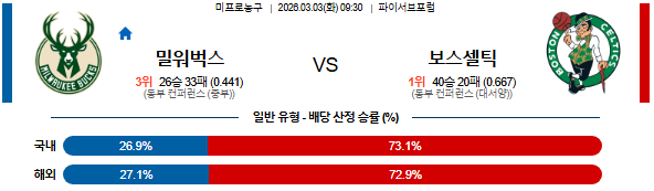 2026-03-03 09:30 NBA 밀워키 벅스 vs 보스턴 셀틱스