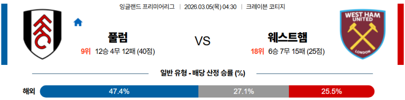 2026-03-05 04:30 프리미어리그 풀럼 웨스트햄