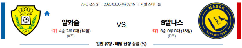 2026-03-05 03:15 AFC 챔피언스리그 2 알 와슬 FC 알 나스르(KSA)