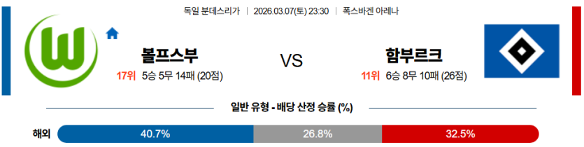 2026-03-07 23:30 분데스리가 VfL 볼프스부르크 함부르크