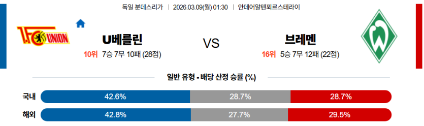 2026-03-09 01:30 분데스리가 우니온베를린 SV 베르더 브레멘
