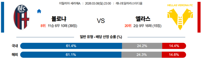 2026-03-08 23:00 세리에 A 볼로냐 FC 엘라스 베로나 FC