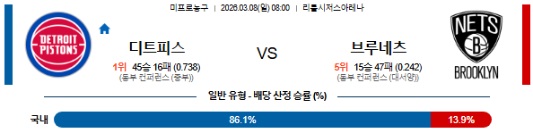 2026-03-08 08:00 NBA 디트로이트 피스톤스 vs 브루클린 네츠