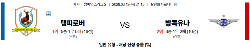2026-03-12 21:15 AFC 챔피언스리그 2 탐파인스 로버스 FC 방콕 유나이티드 FC