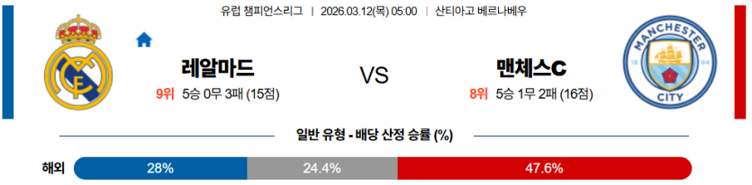 2026-03-12 05:00 UEFA 챔피언스리그 레알 마드리드 맨체스터 시티