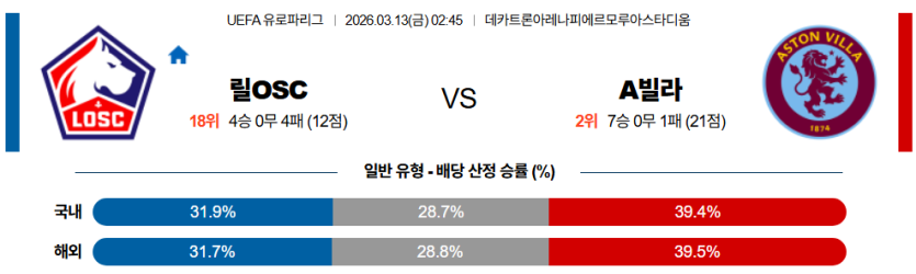2026-03-13 02:45 UEFA 유로파리그 릴 OSC 애스턴 빌라