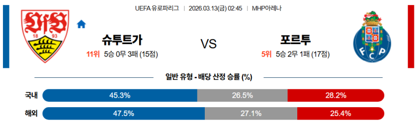 2026-03-13 02:45 UEFA 유로파리그 VfB 슈투트가르트 FC 포르투