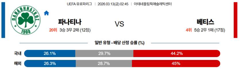 2026-03-13 02:45 UEFA 유로파리그 파나시나이코스 레알 베티스