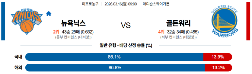 2026-03-16 09:00 NBA 뉴욕 닉스 골든스테이트 워리어스