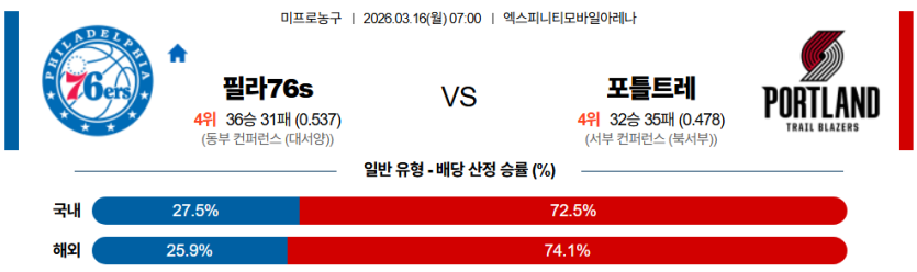 2026-03-16 07:00 NBA 필라델피아 76ERS 포틀랜드 트레일블레이저