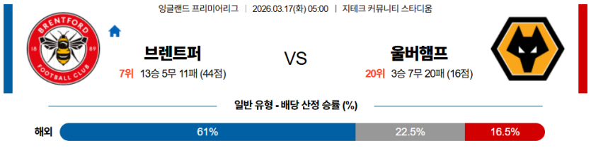 2026-03-17 05:00 프리미어리그 브렌트퍼드 FC 울버햄튼