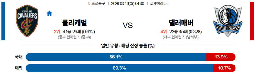 2026-03-16 04:30 NBA 클리블랜드 캐벌리어스 댈러스 매버릭스