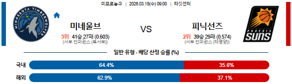 2026-03-18 09:00 NBA 미네소타 울브스 vs 피닉스 선즈