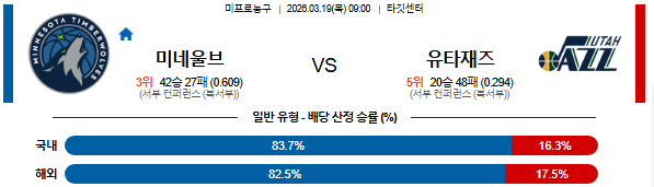 2026-03-19 09:00 NBA 미네소타 울브스 vs 유타 재즈