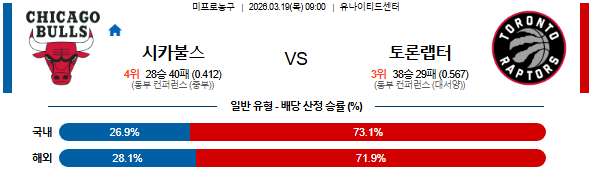 2026-03-19 09:00 NBA 시카고 불스 vs 토론토 랩터스