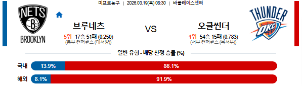 2026-03-19 08:30 NBA 브루클린 네츠 vs 오클라호마시티 썬더