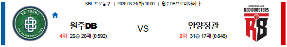2026-03-24 19:00 KBL 원주 DB vs 안양 정관장