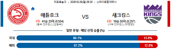 2026-03-29 08:30 NBA 애틀랜타 호크스 vs 새크라멘토 킹스