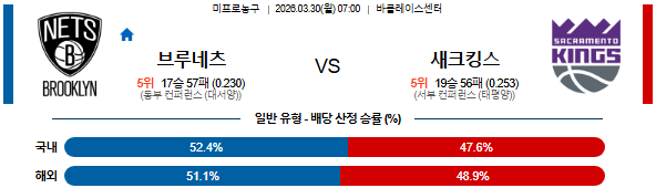 2026-03-30 07:00 NBA 브루클린 네츠 vs 새크라멘토 킹스