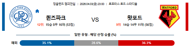2026-04-03 23:00 잉글랜드 챔피언쉽 퀸즈 파크 vs 레인저스 왓포드